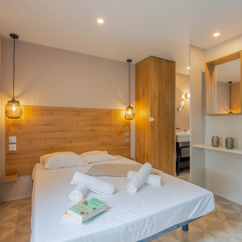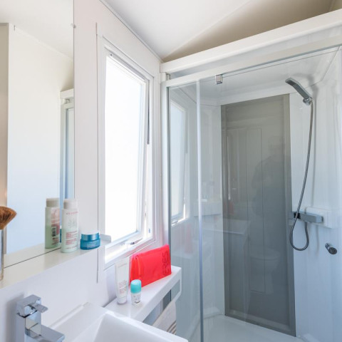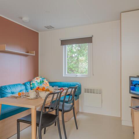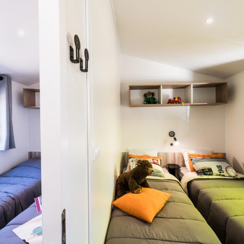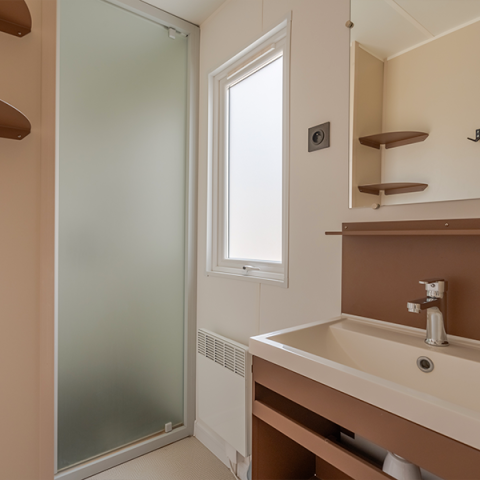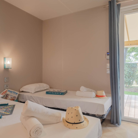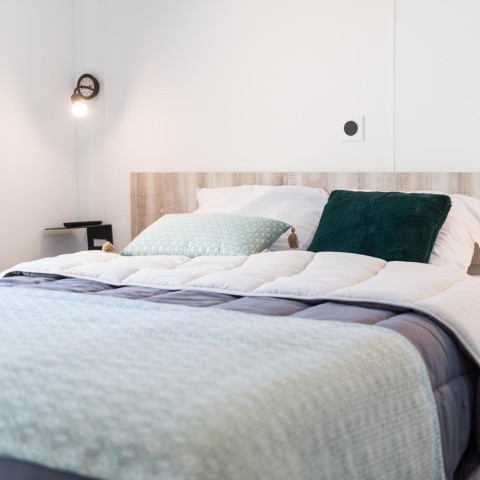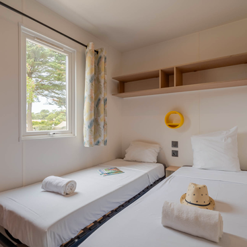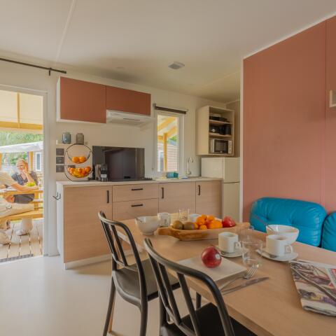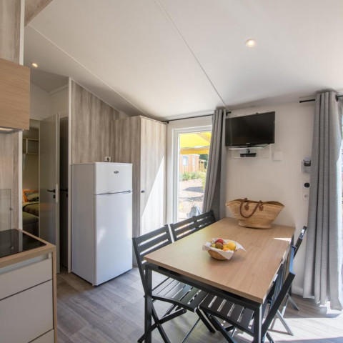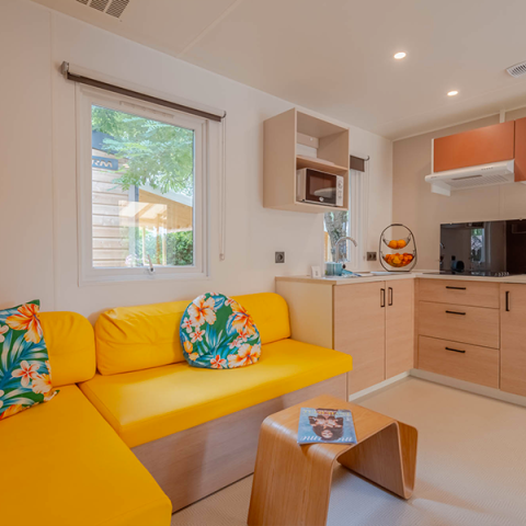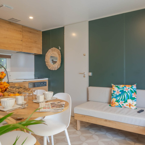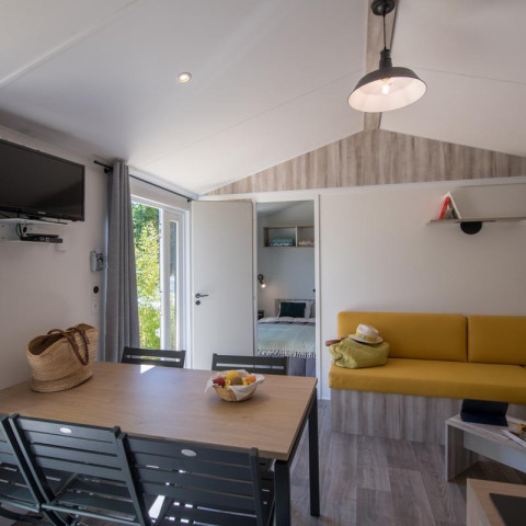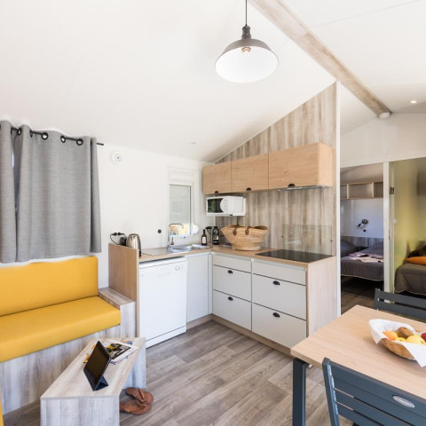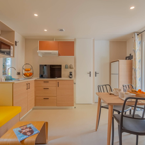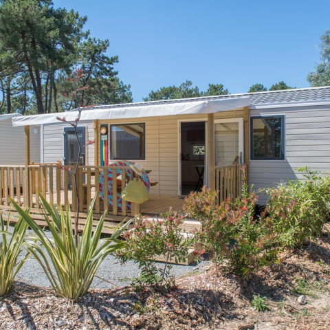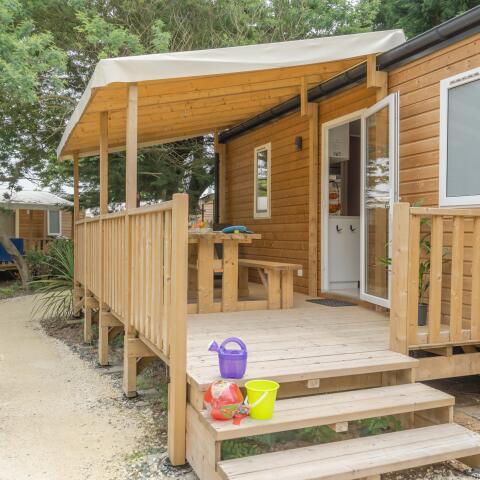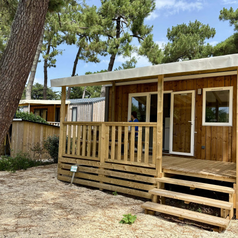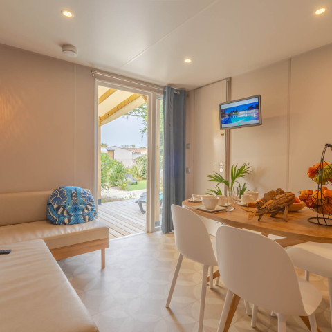 El camping en la isla de Ré, en Sainte-Marie-de-Ré, con piscina climatizada, te ofrece una selección de mobil homes de alta gama con terraza cubierta privada, habitaciones separadas y cocina equipada.